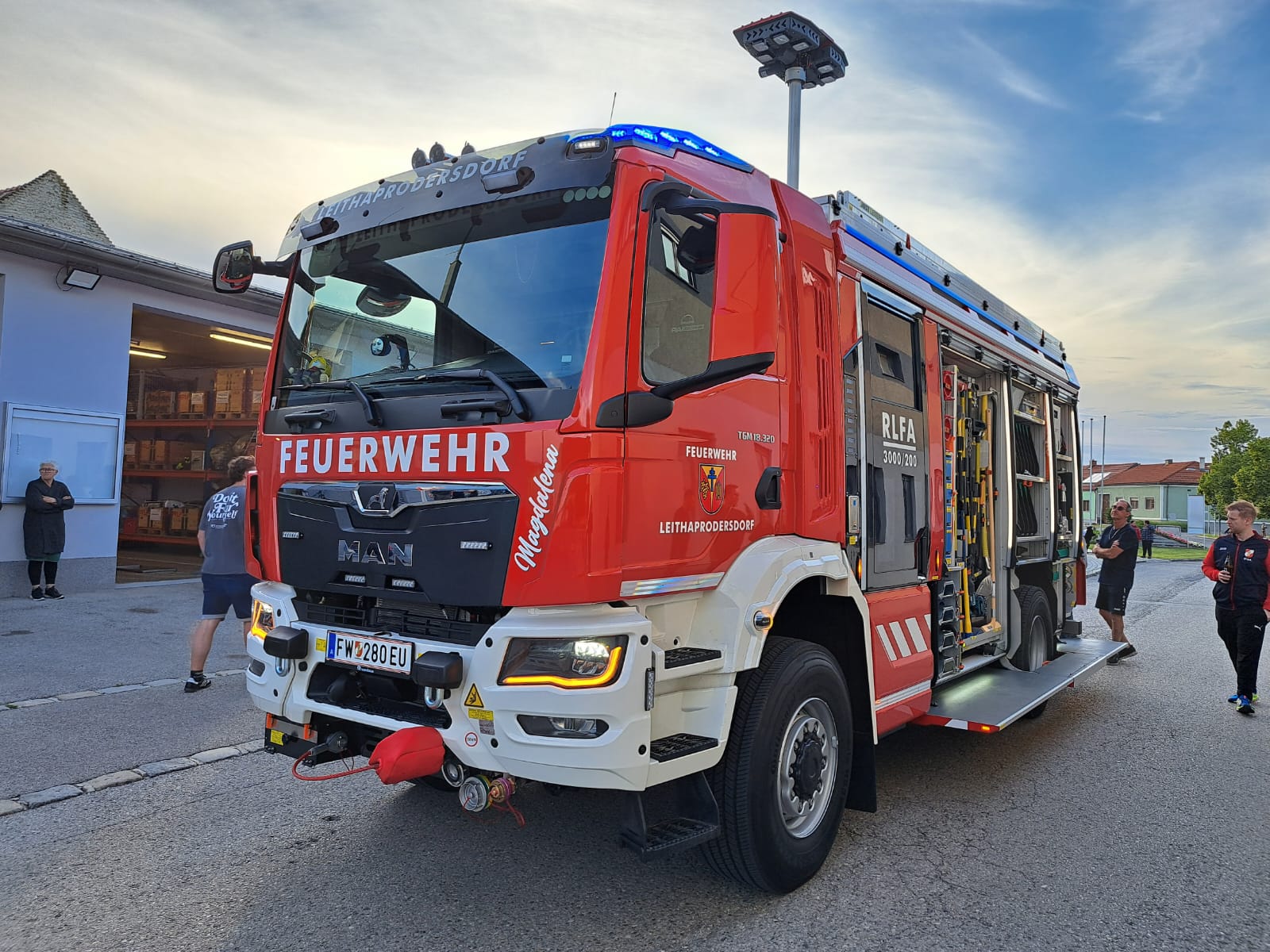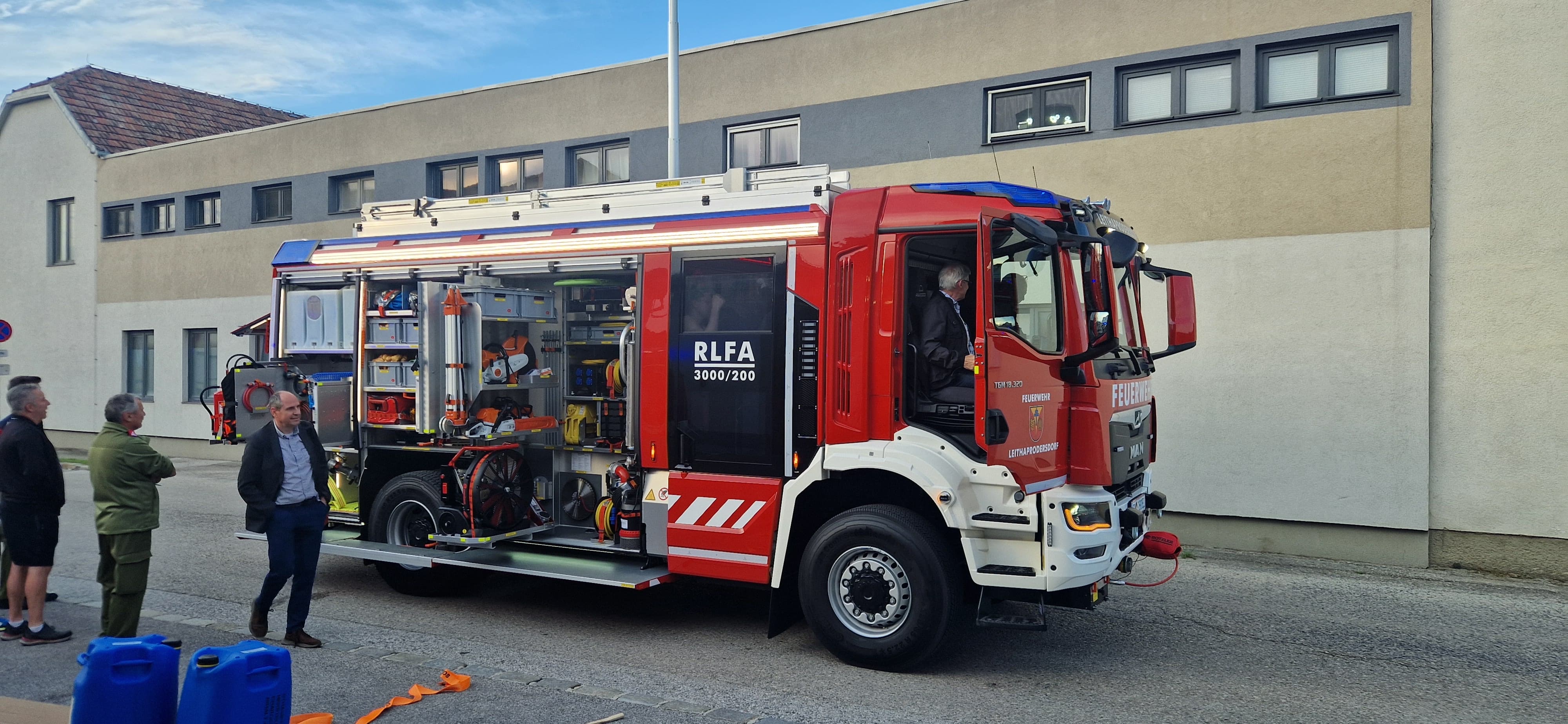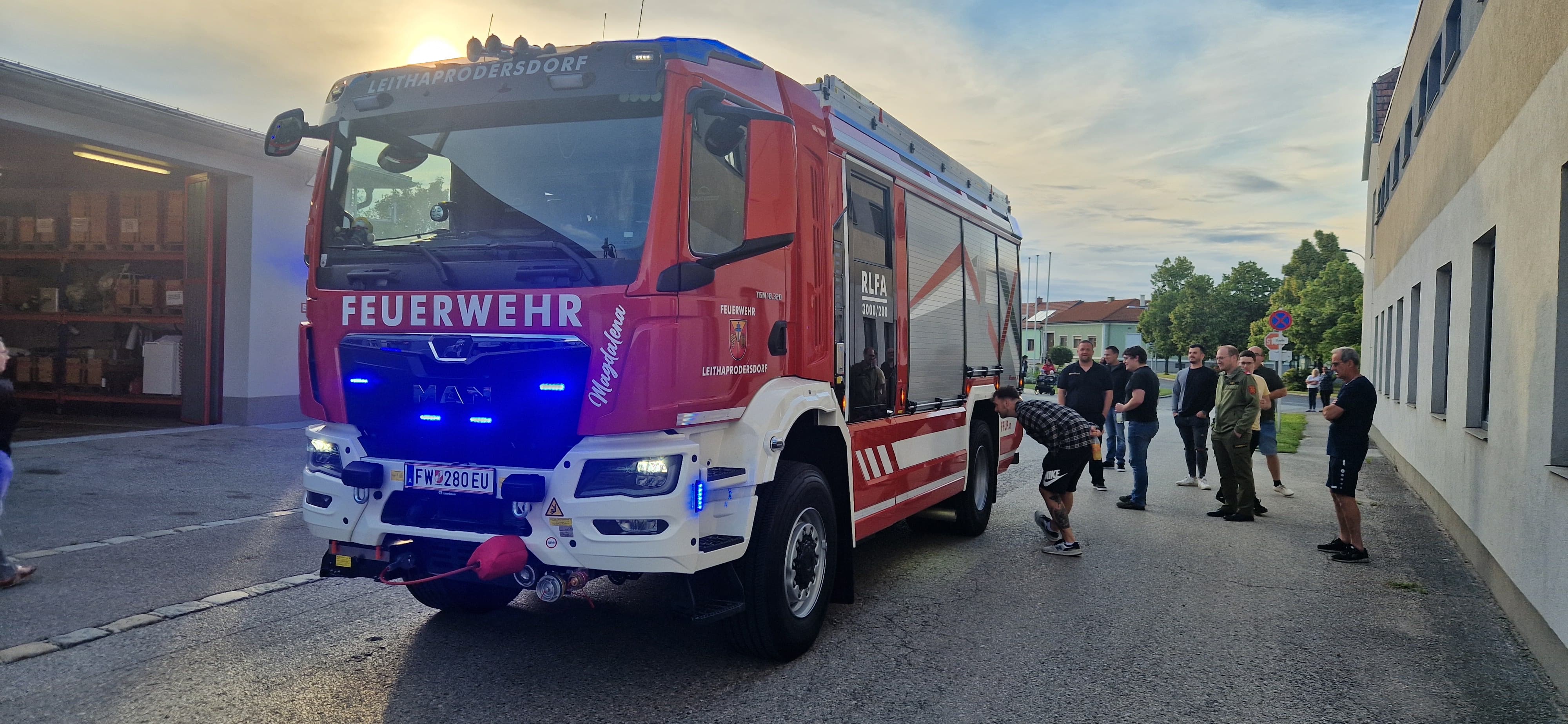 Vor Kurzem durften wir unser neues Rüstlöschfahrzeug vom Aufbauhersteller Rosenbauer abholen. Wir ließen es uns natürlich nicht nehmen und organisierten einen kleinen Empfang im Feuerwehrhaus für alle Interessierten.
